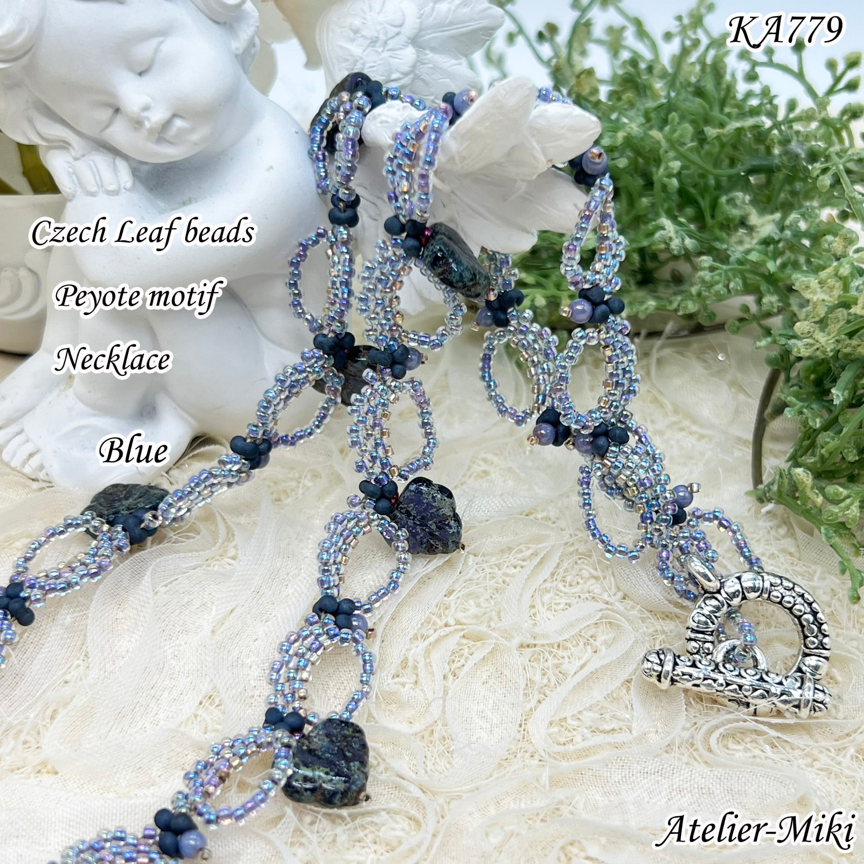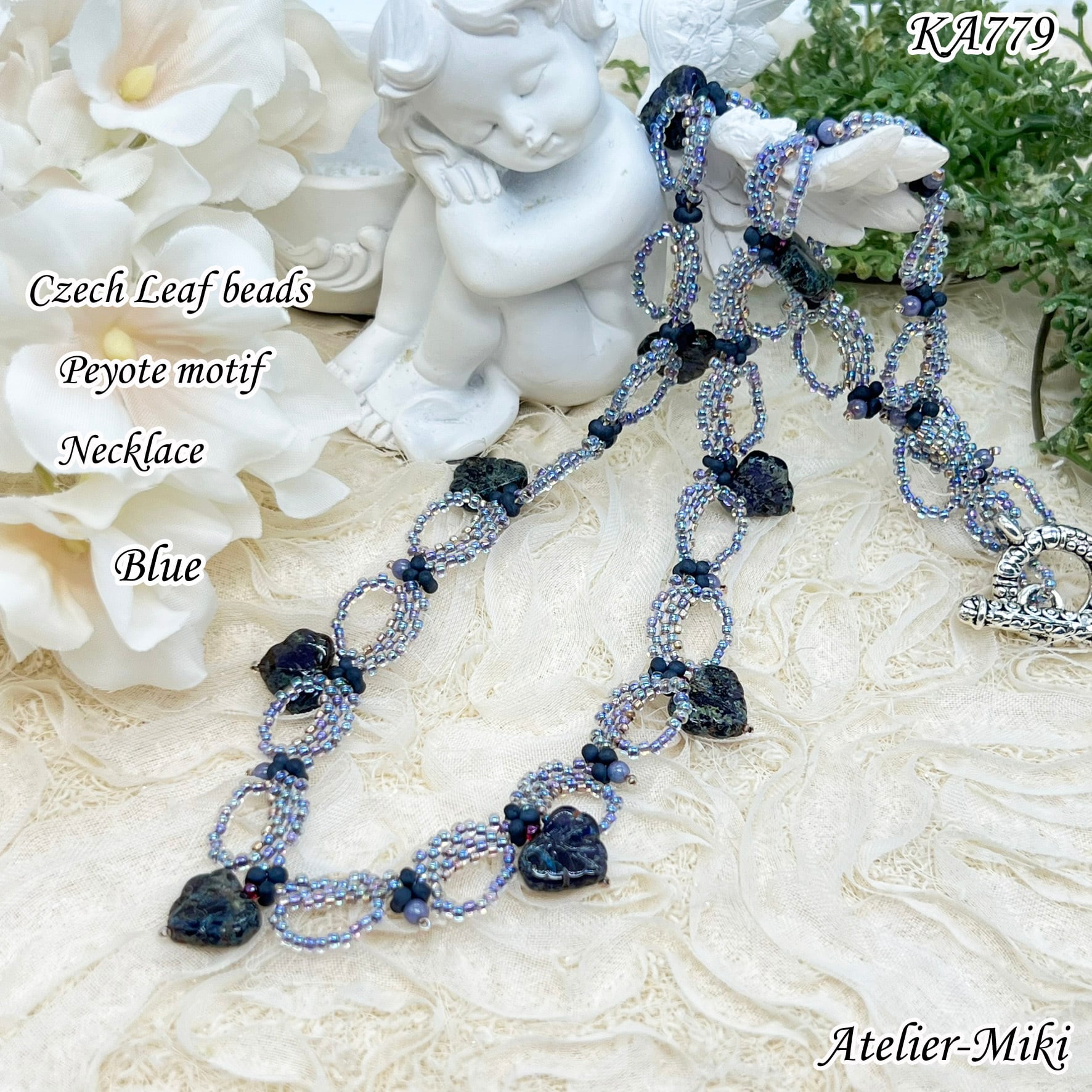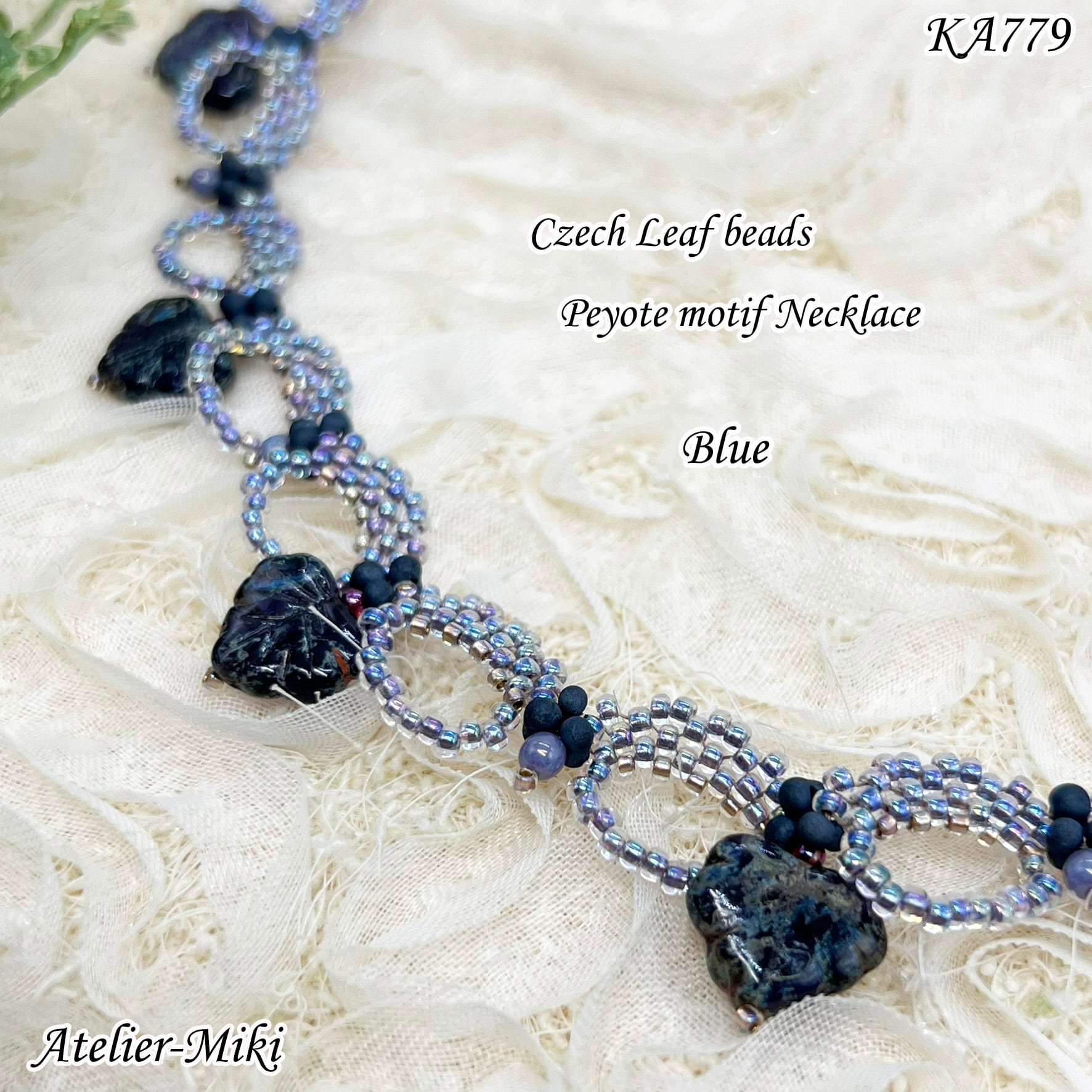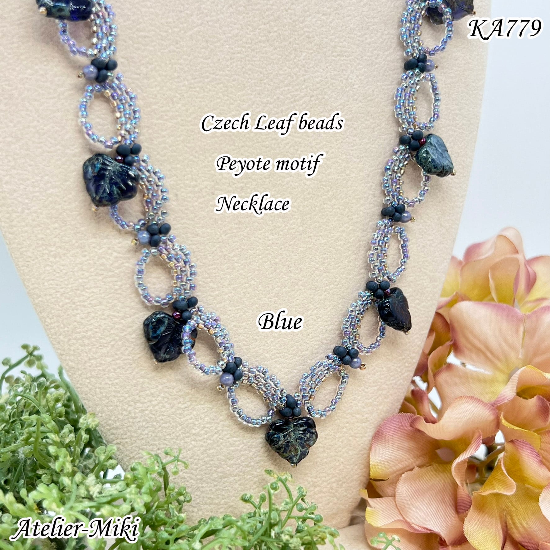 KA779 ビーズキット チェコリーフビーズ ペヨーテモチーフ ネックレス【ブルー】