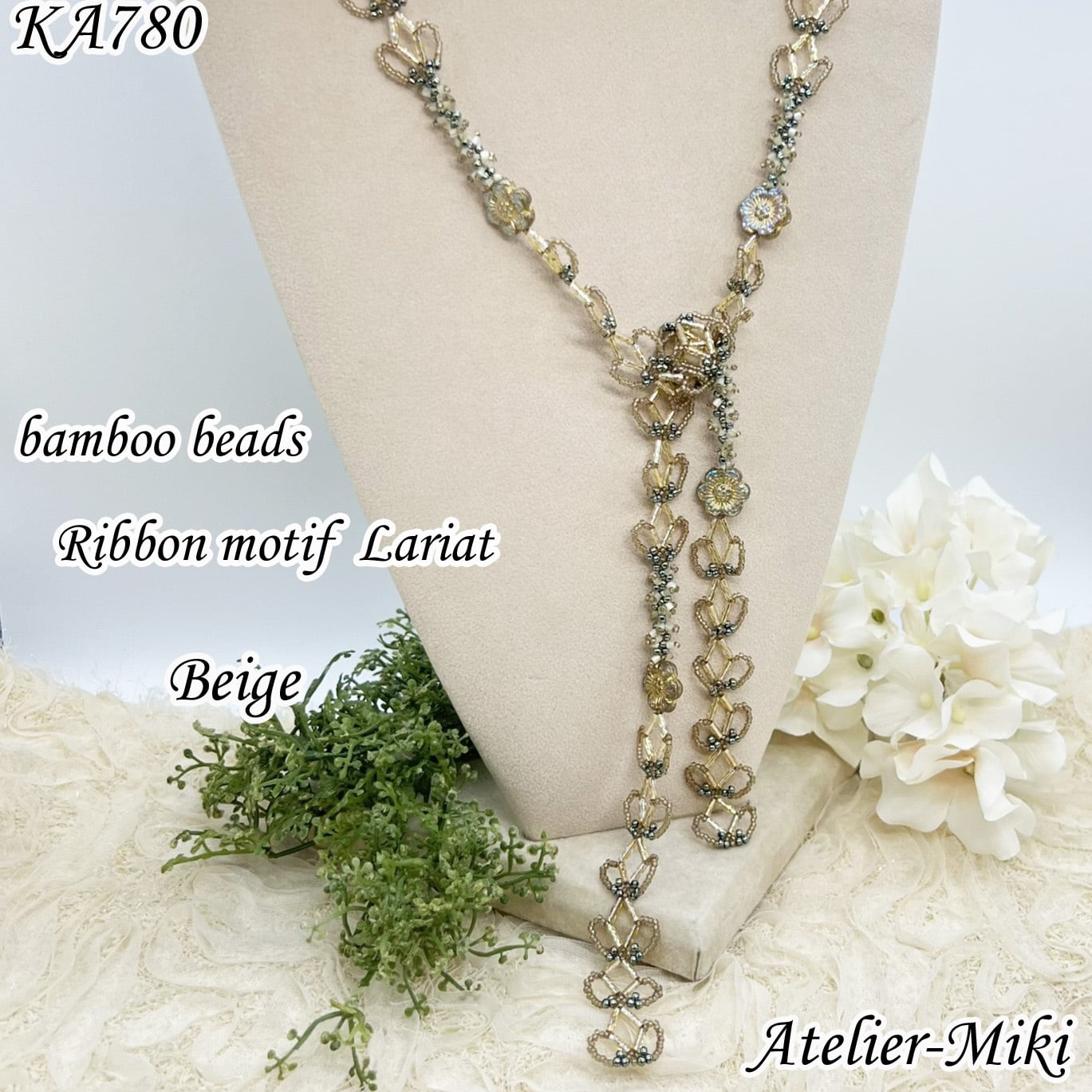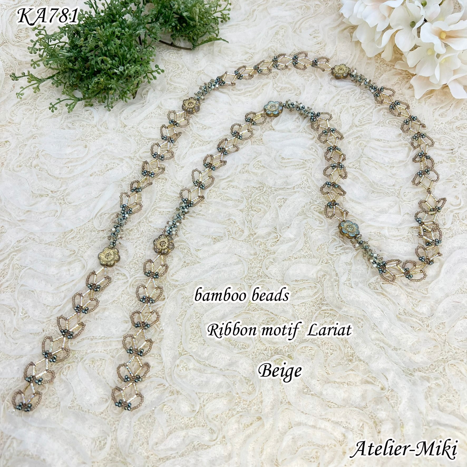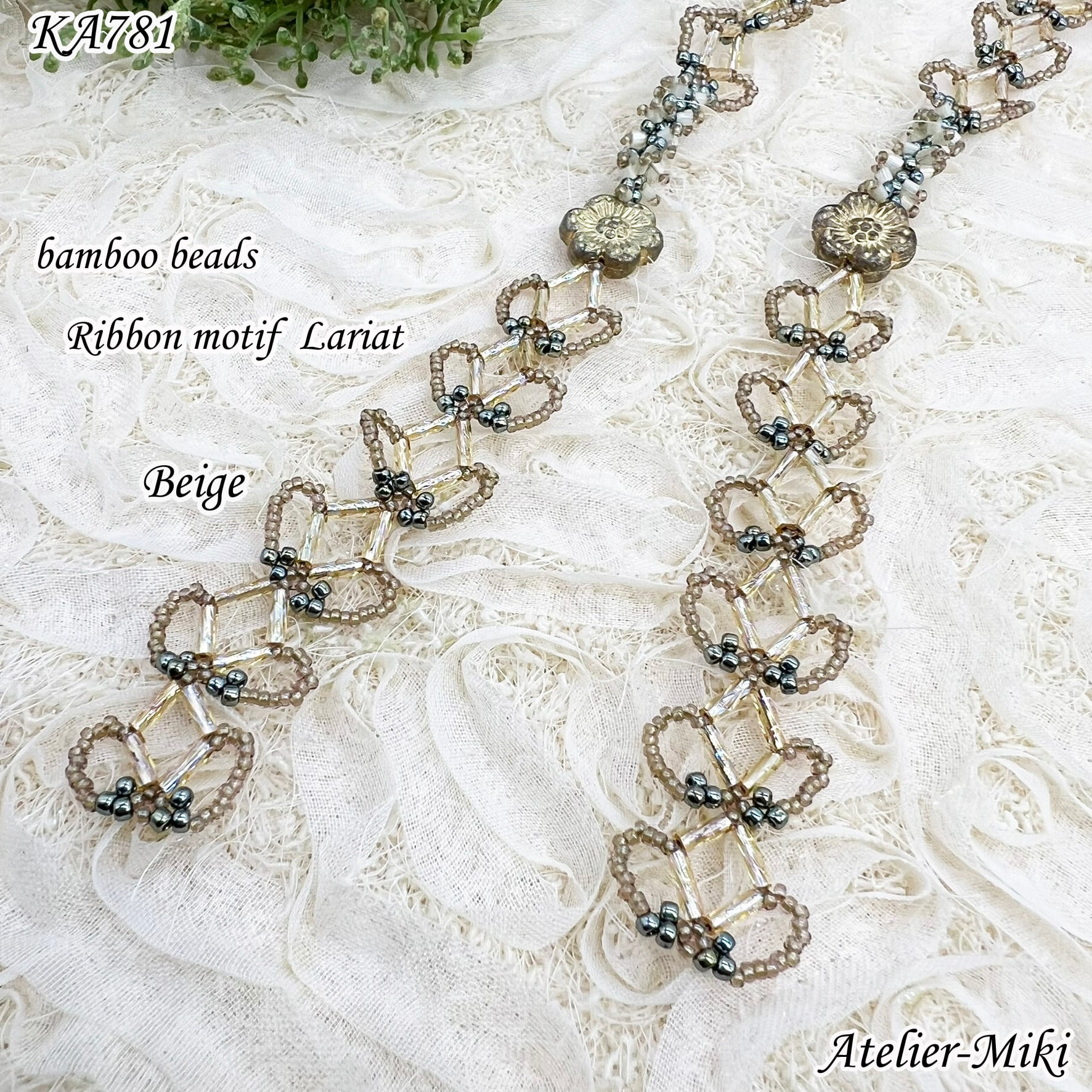 KA781 バンブービーズ リボンモチーフ ラリエット【ベージュ】