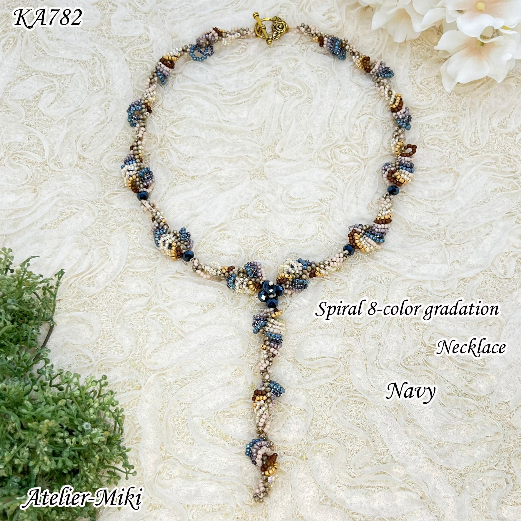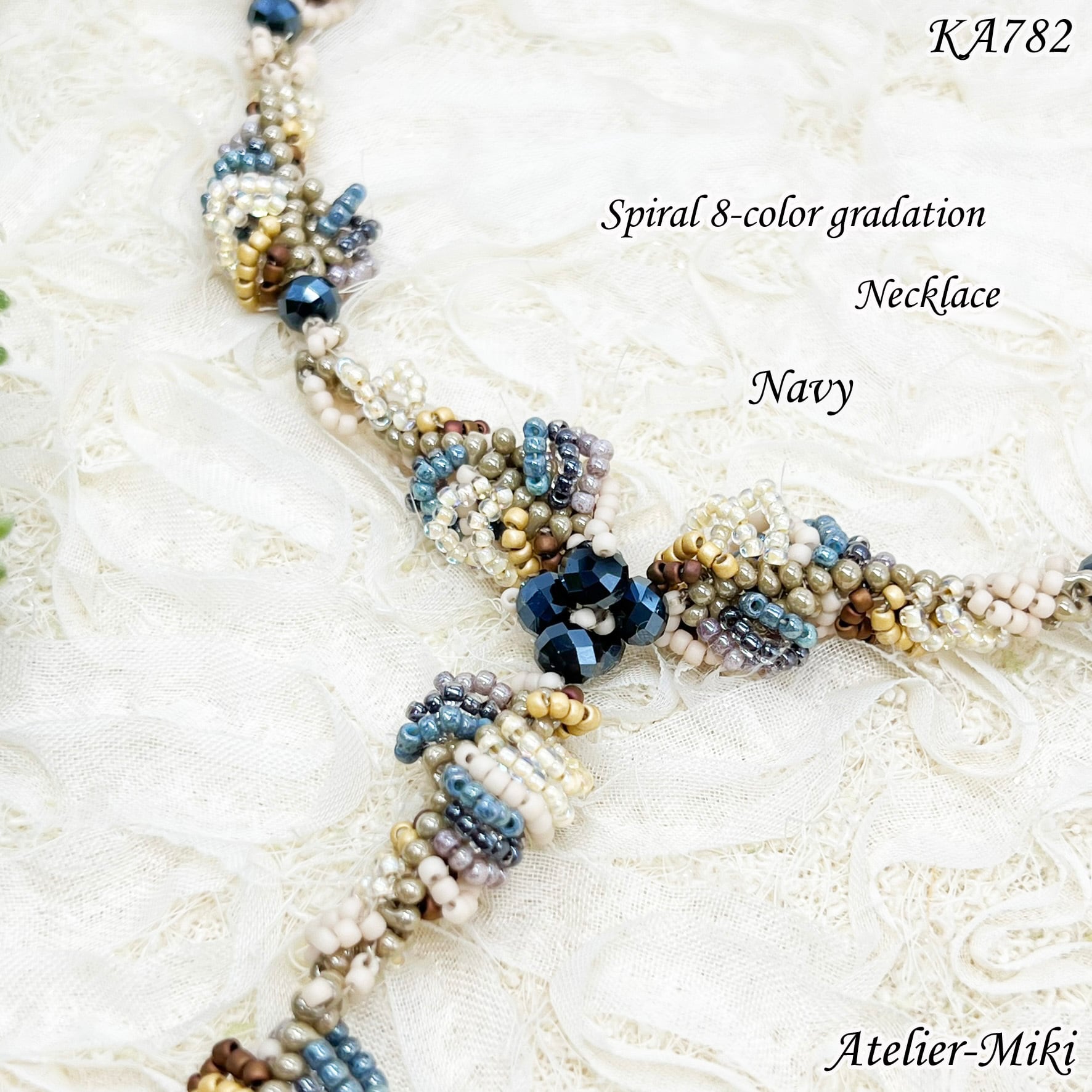 KA783 スパイラル 8カラーグラデーション ネックレス【ネイビー】