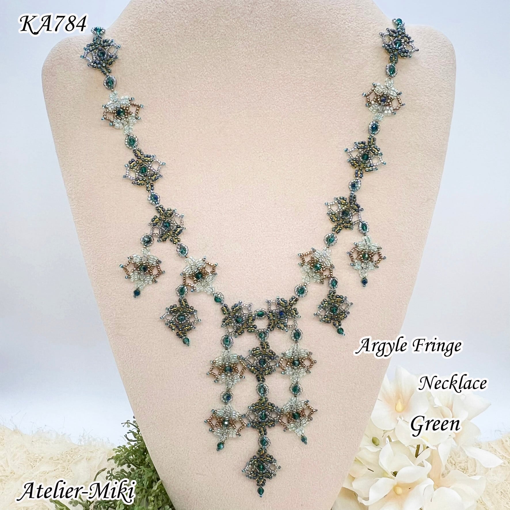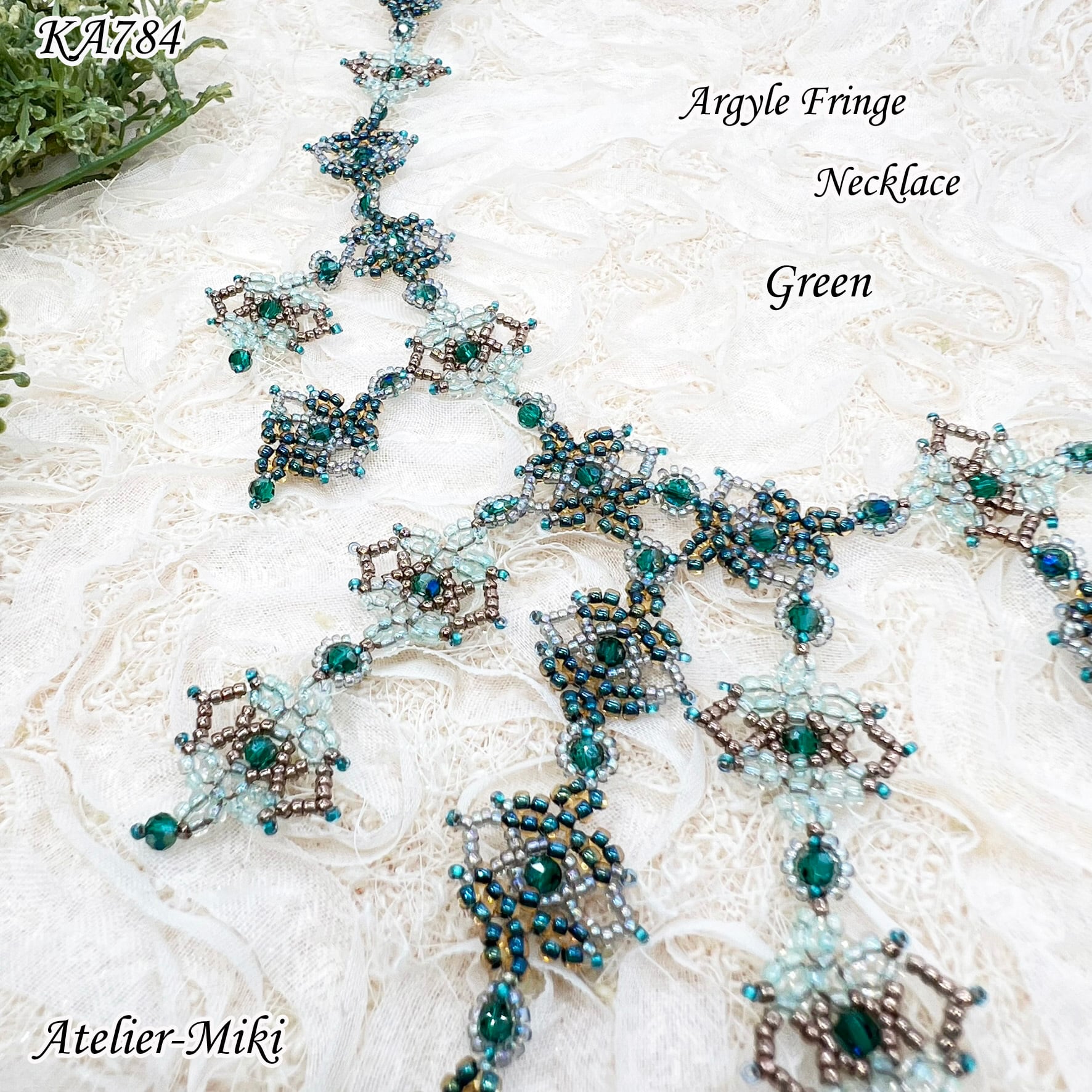 KA784 アーガイル フリンジ ネックレス【グリーン】