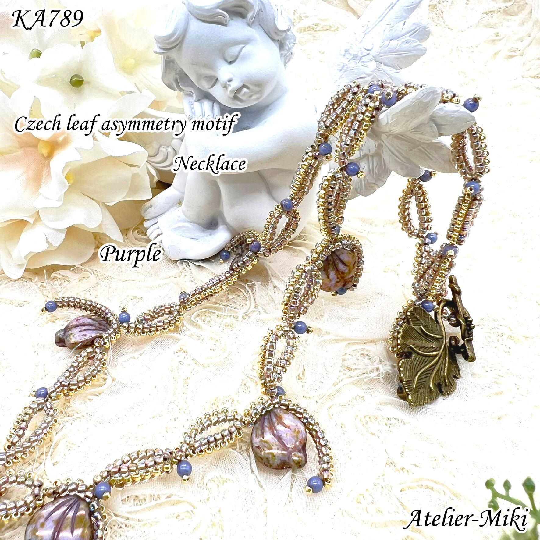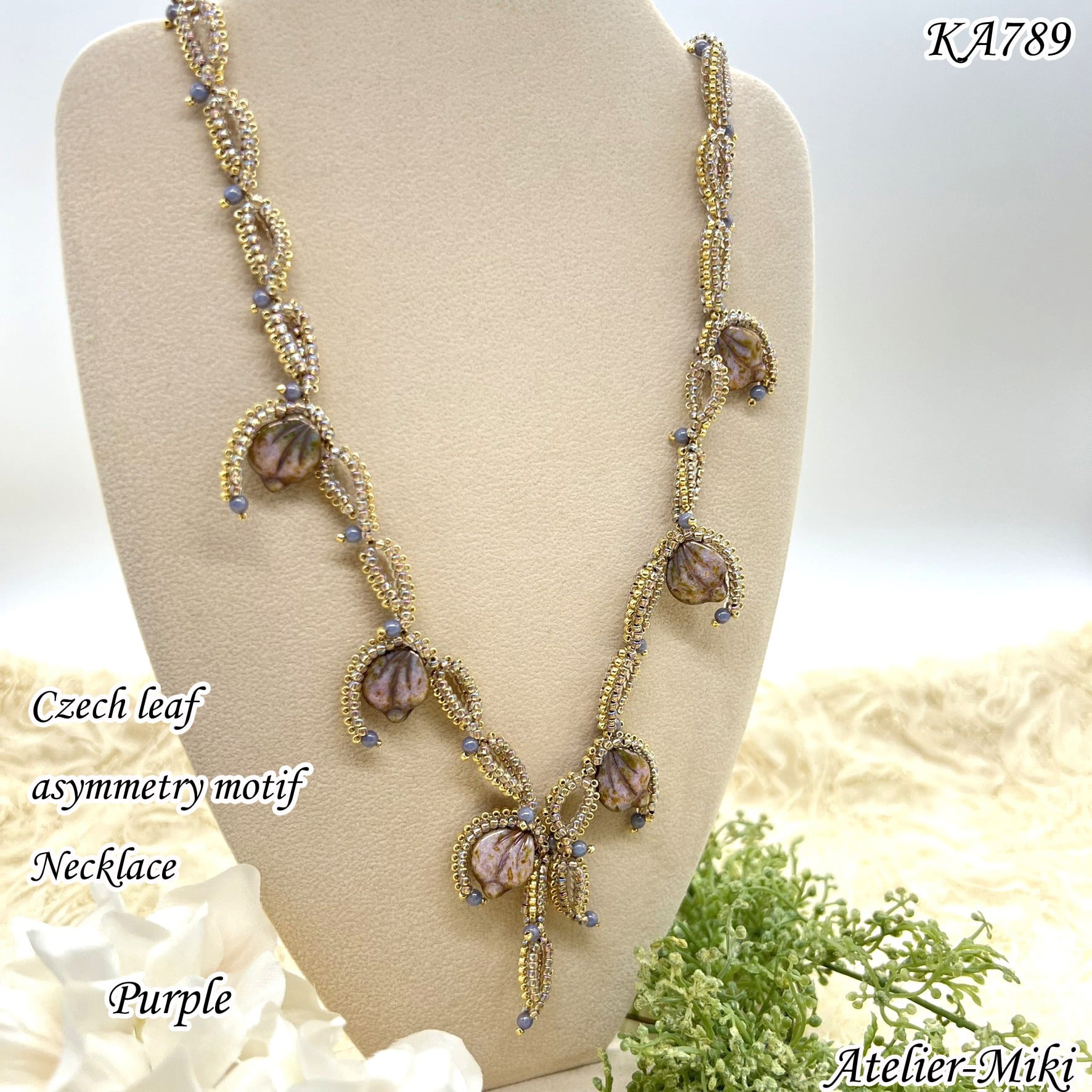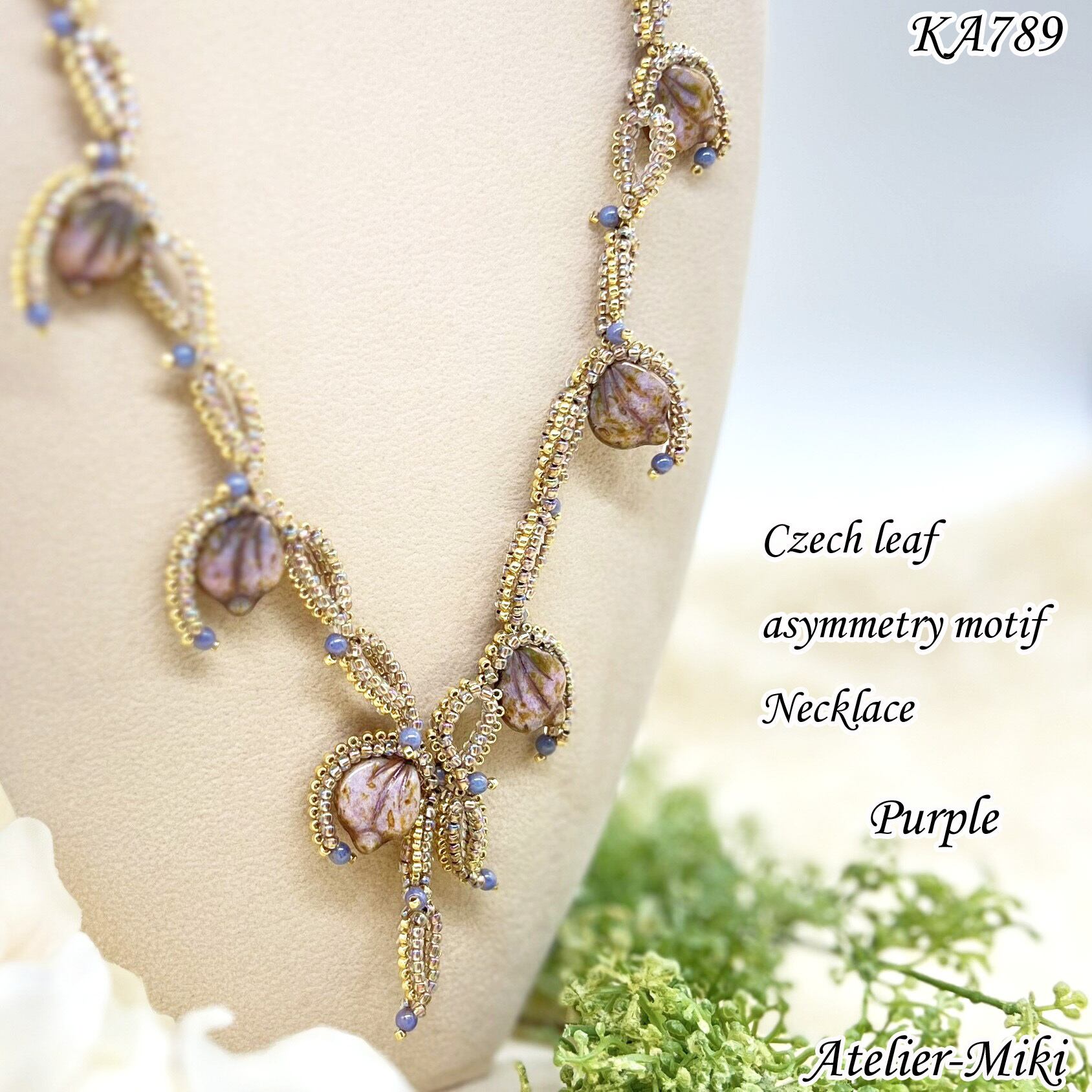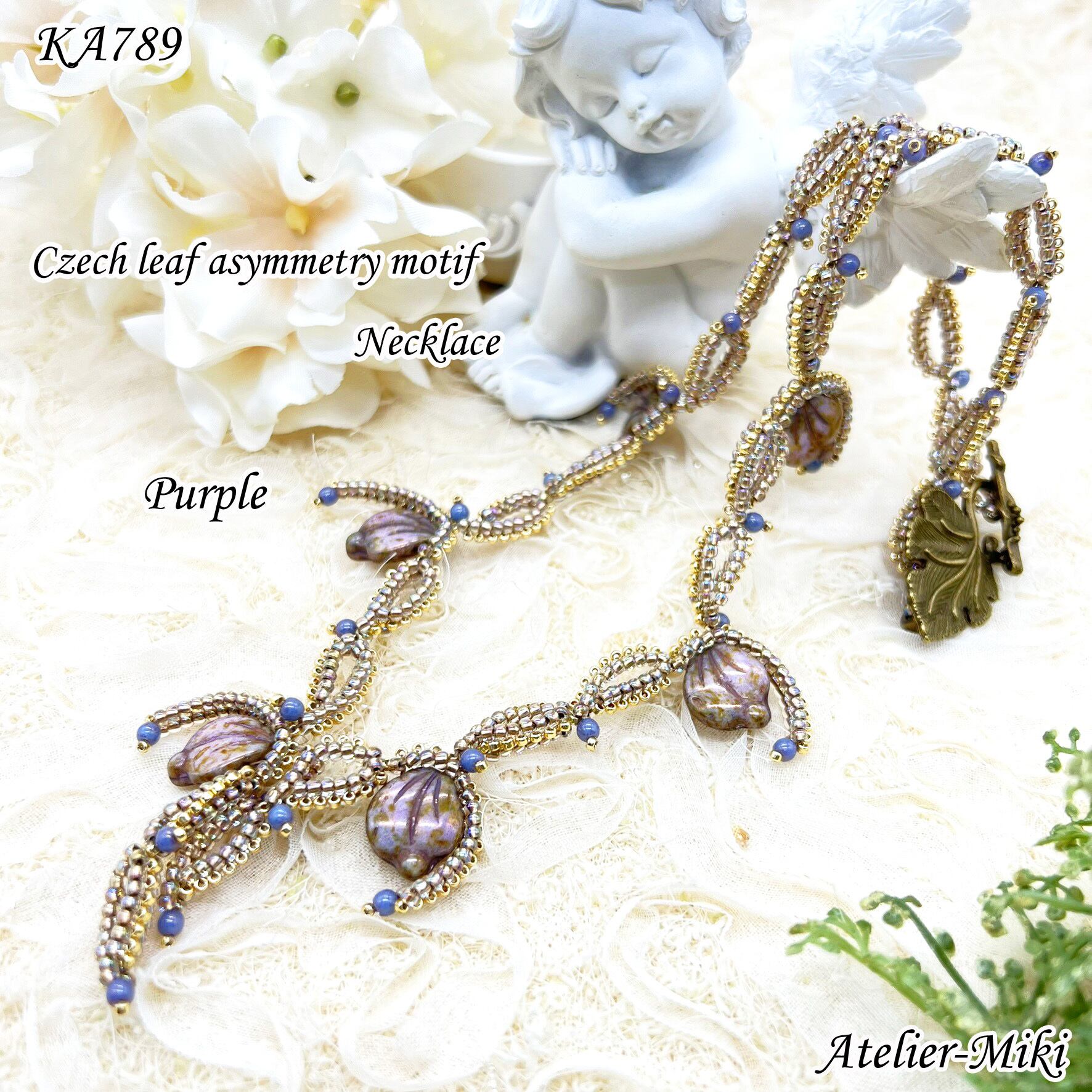 KA789 チェコリーフ アシンメトリー モチーフ ネックレス【パープル】