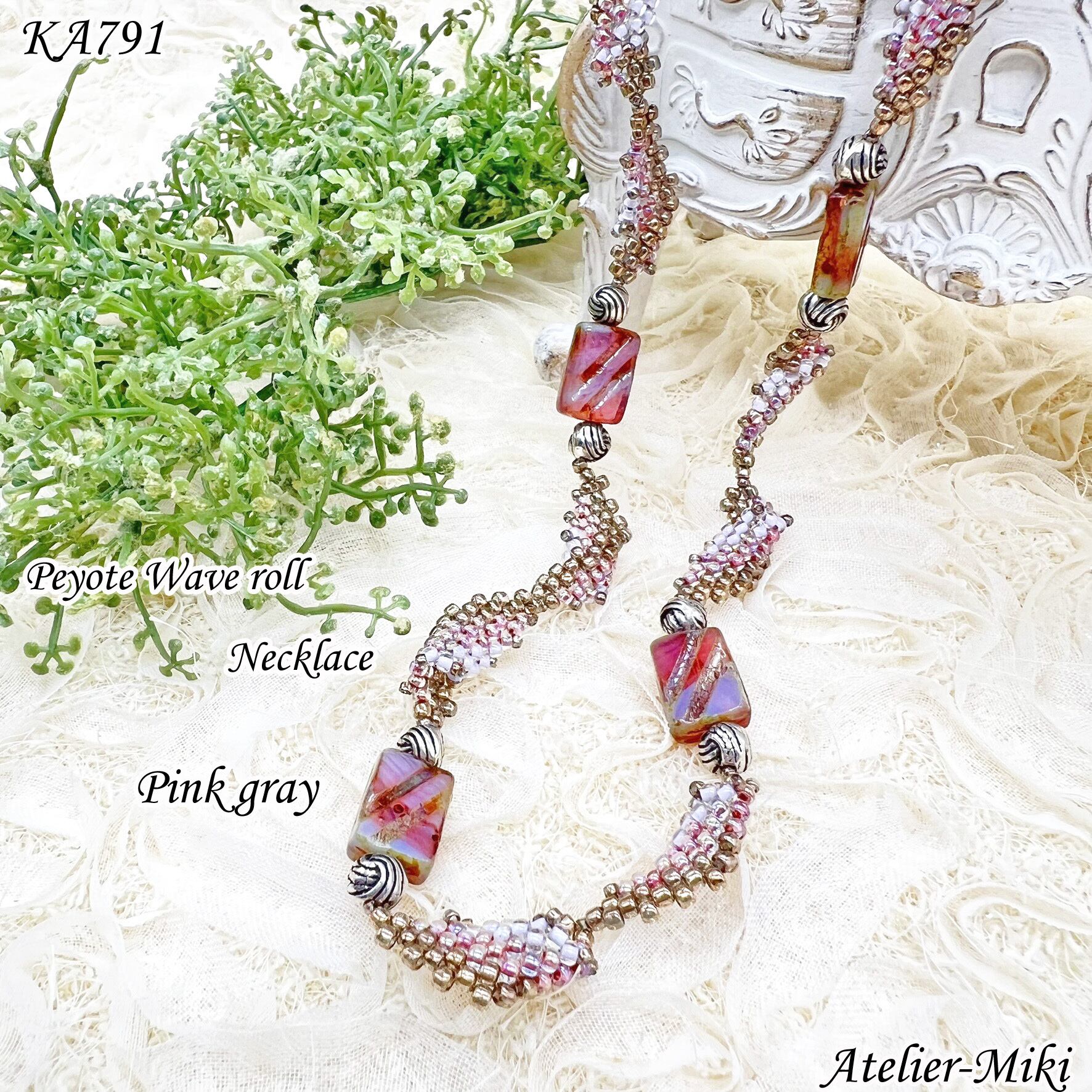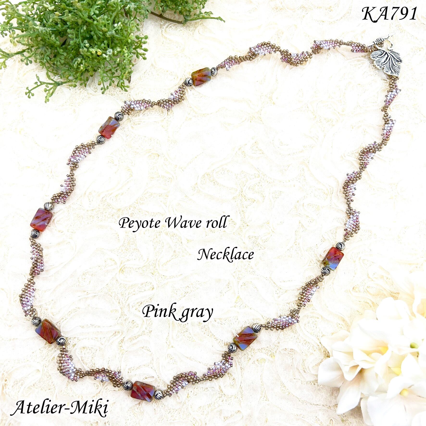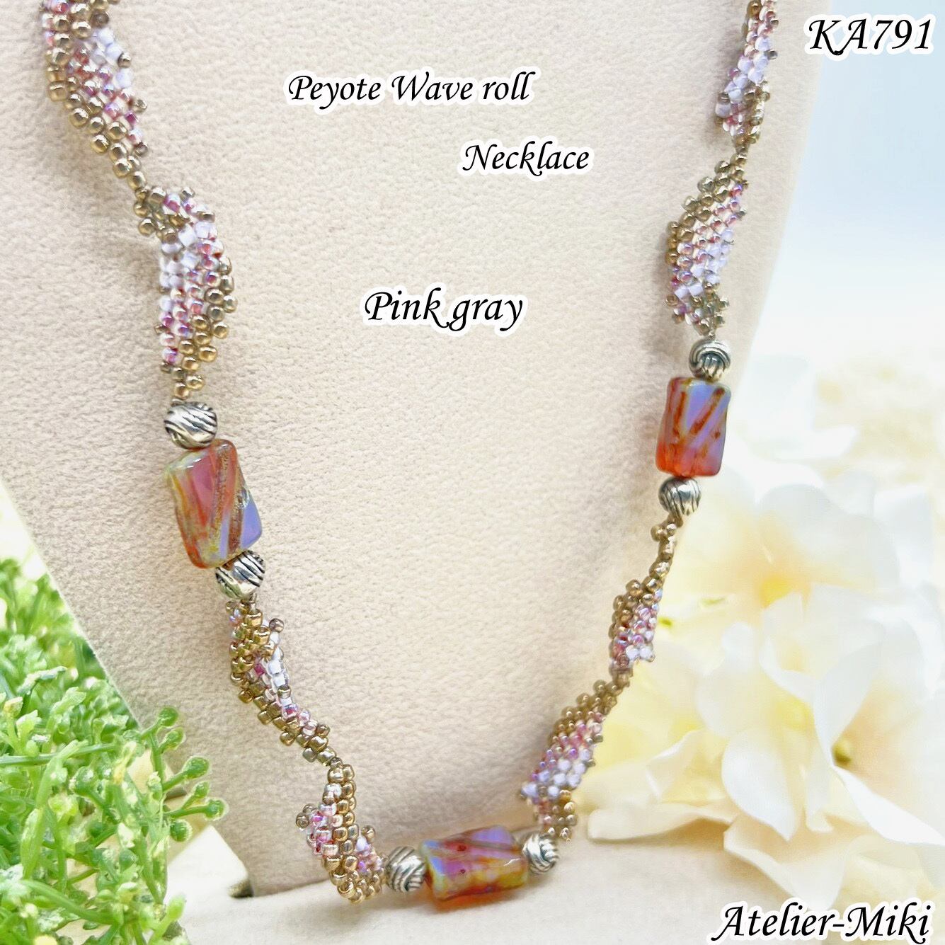 KA791 ペヨーテ ウェーブロール ネックレス【ピンクグレー】