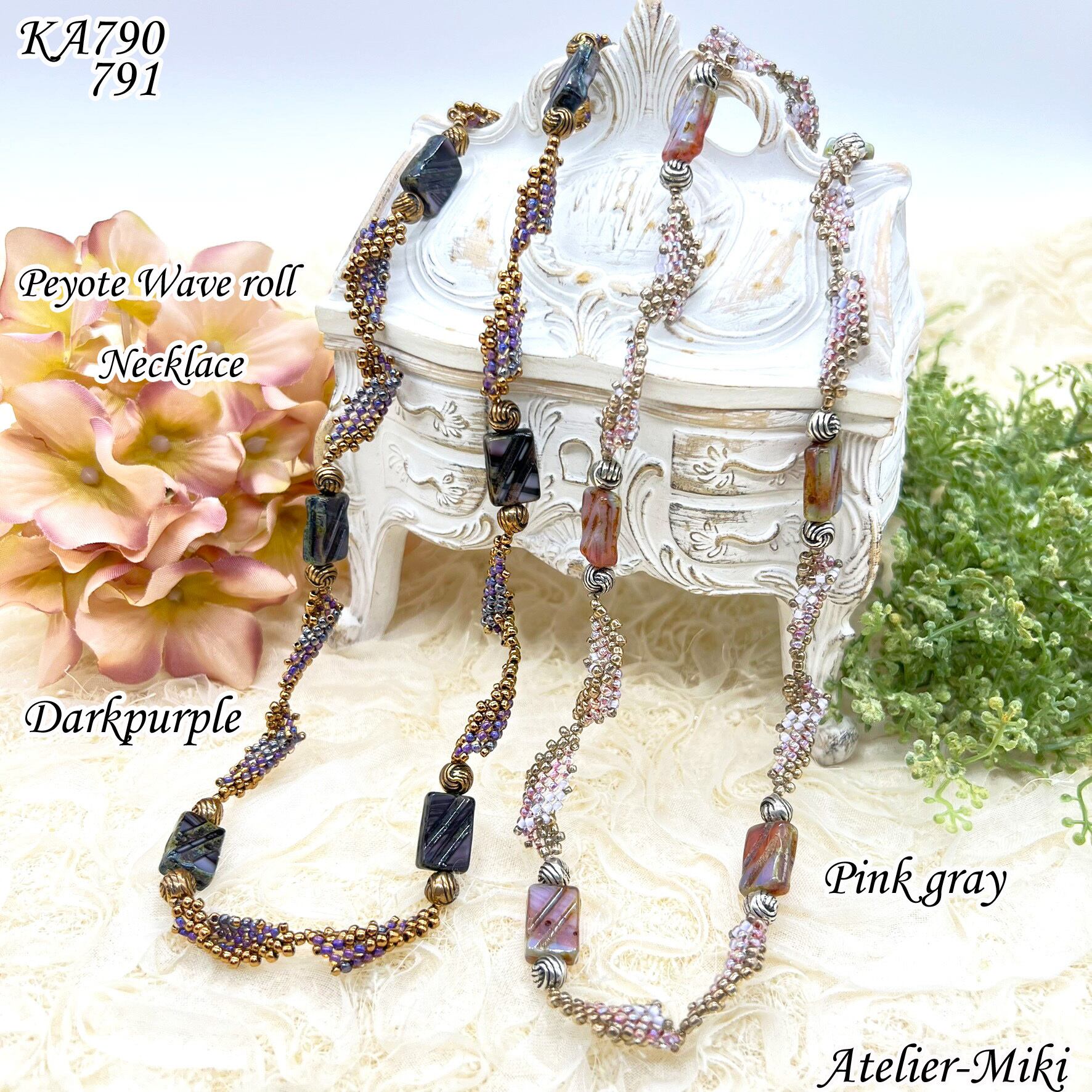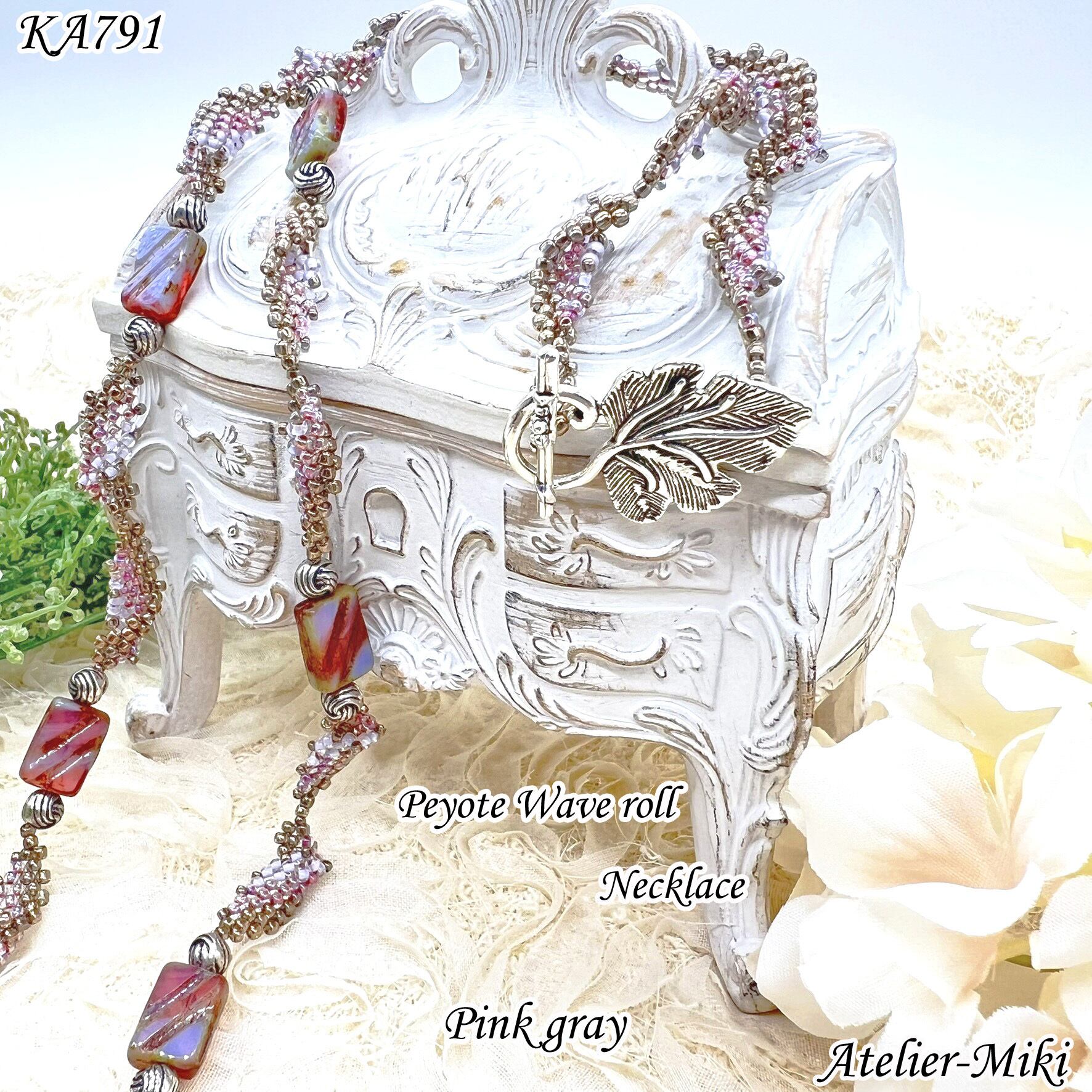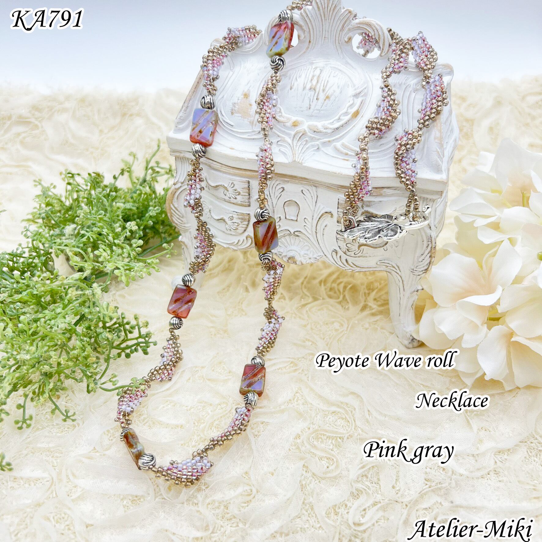 KA791 ペヨーテ ウェーブロール ネックレス【ピンクグレー】