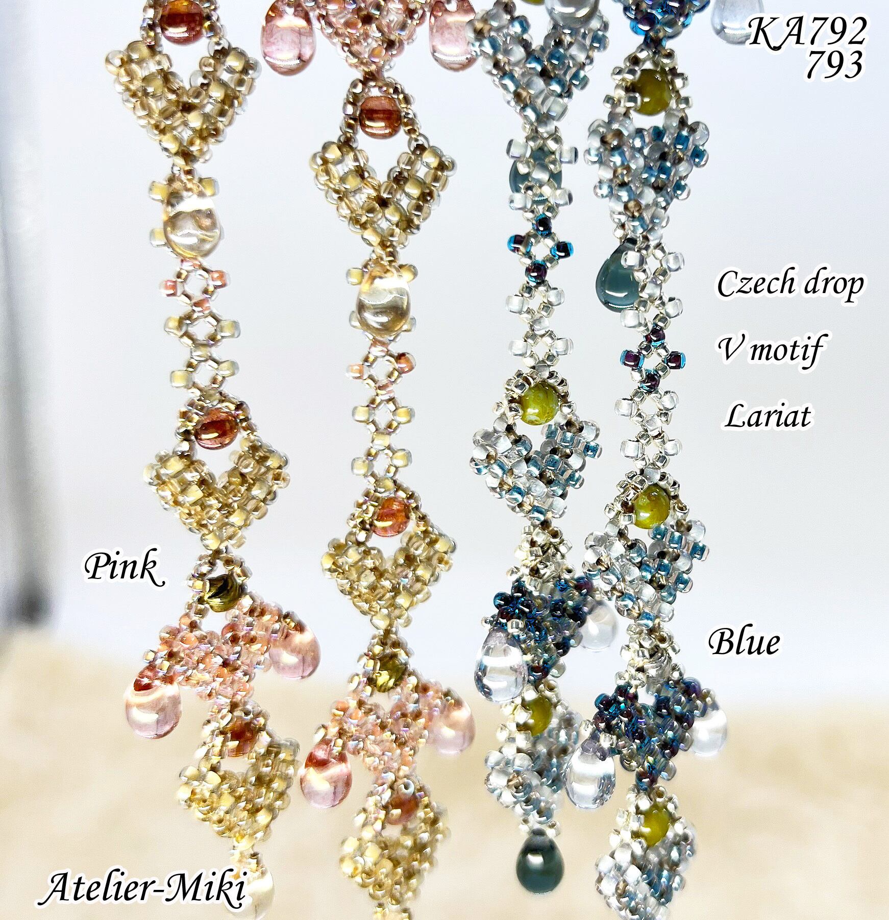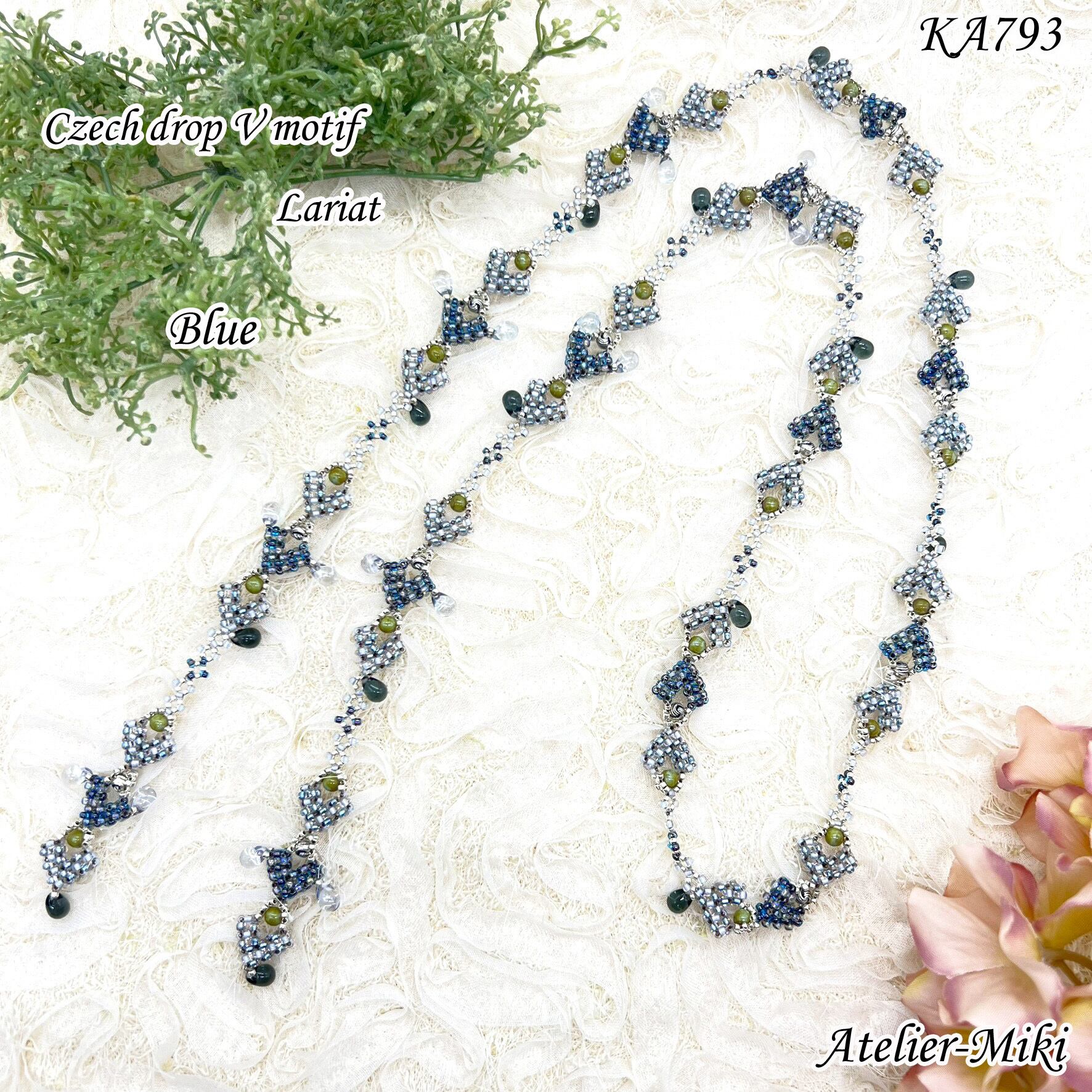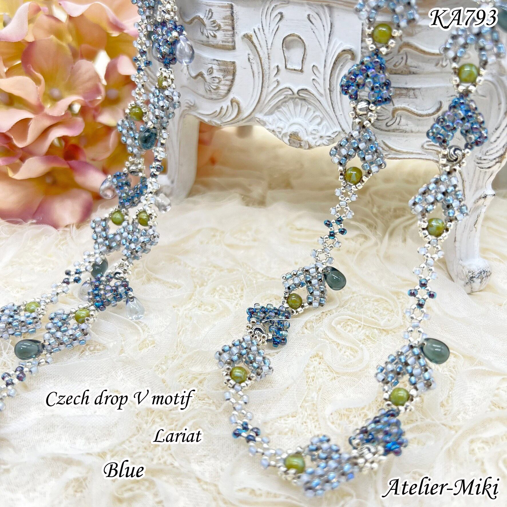 KA793 チェコドロップ Vモチーフ ラリエット【ブルー】