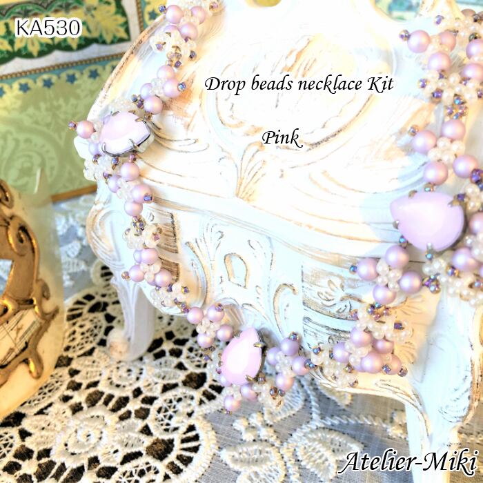 KA530 ビーズキット ドロップビーズネックレス【ピンク】