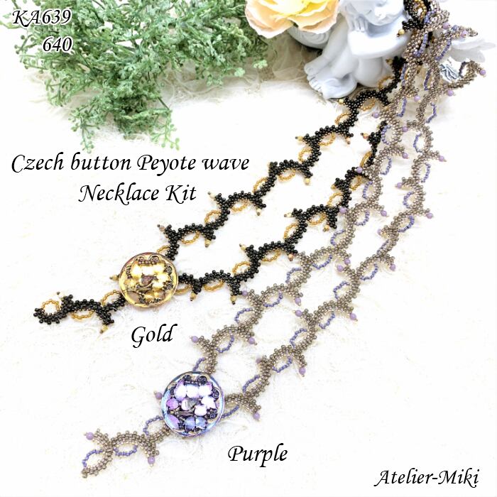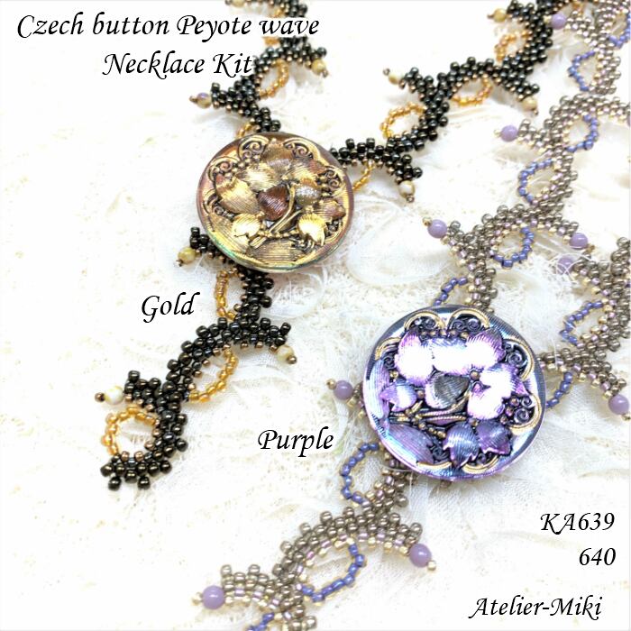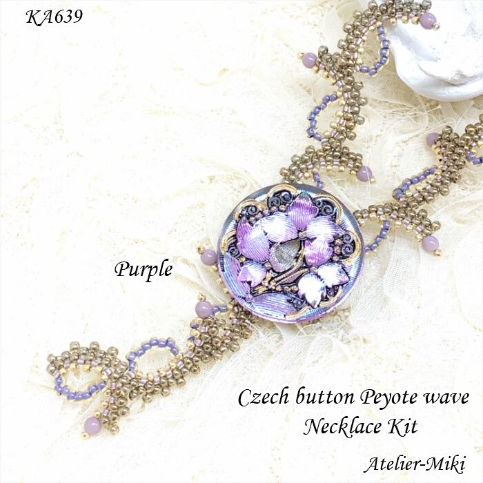 KA639 ビーズキット チェコボタン ペヨーテウェーブ ネックレス【パープル】