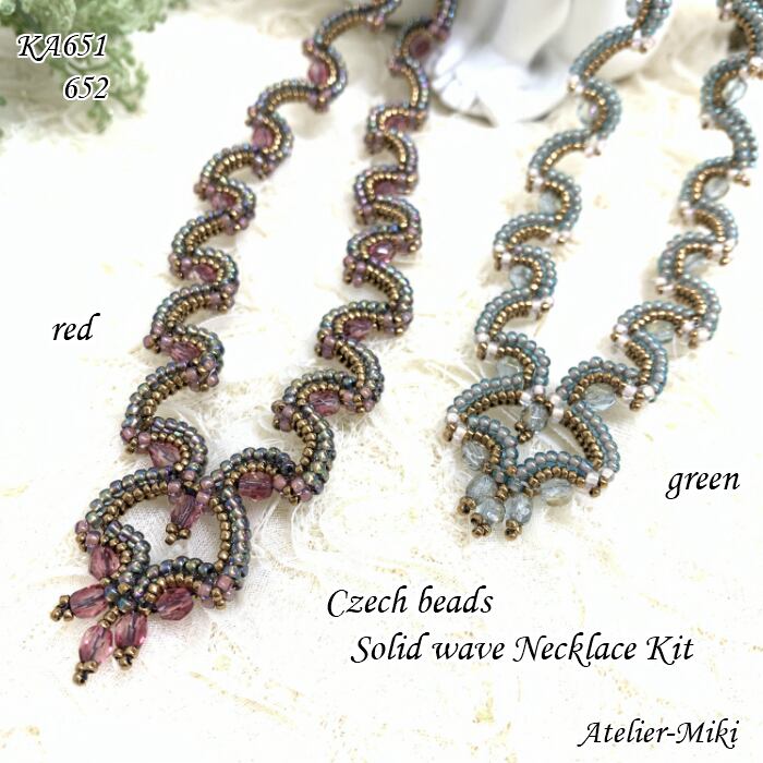 KA652 ビーズキット チェコビーズ立体ウェーブネックレス 【ピンク】