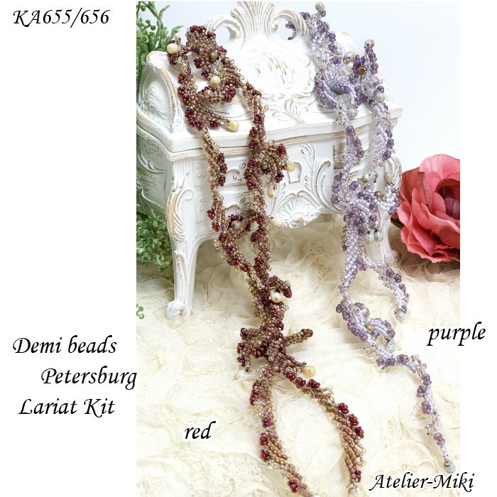 KA655 ビーズキット Demiビーズ ピーターズバーグ ラリエット【レッド】