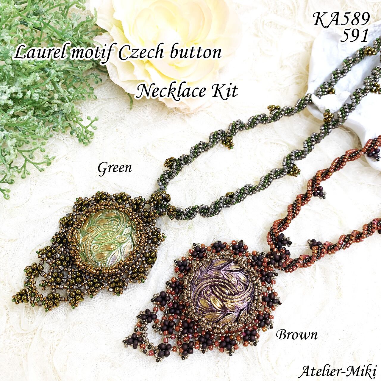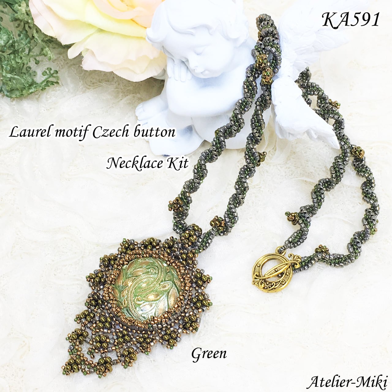 KA591 ビーズキット 月桂樹文様チェコガラスボタン ネックレス 【グリーン】