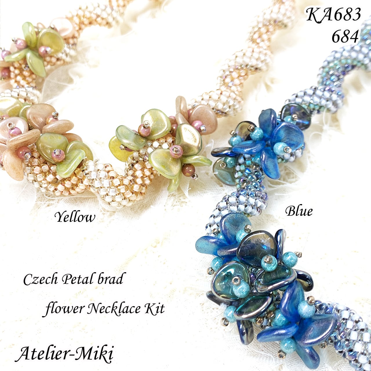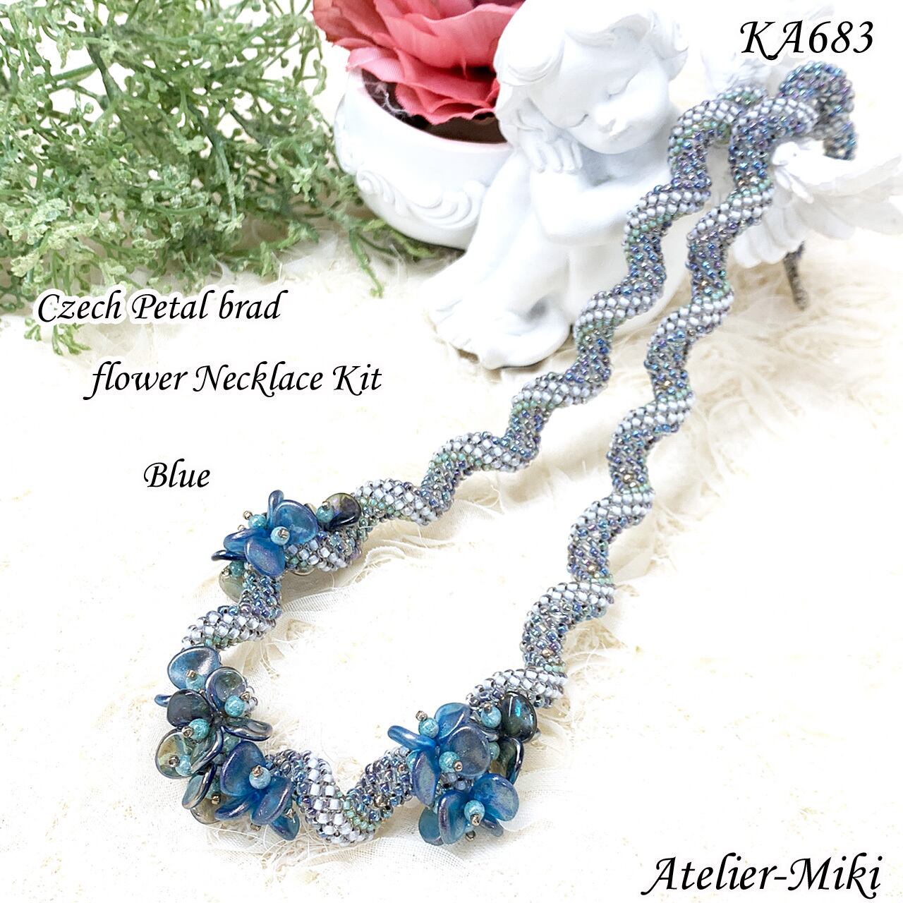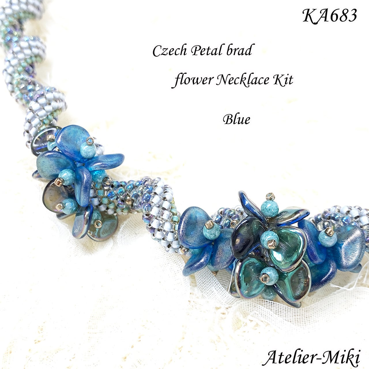 KA683 ビーズキット チェコペタルビーズ フラワー ネックレス 【ブルー】