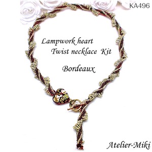 KA496 ビーズキット ランプワークハート変形ツイスト ネックレス 【ボルドー】
