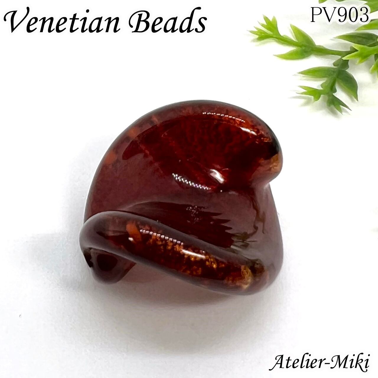 PV903 ベネチアンビーズ ツイストリーフ【レッド】 約18x20mm
