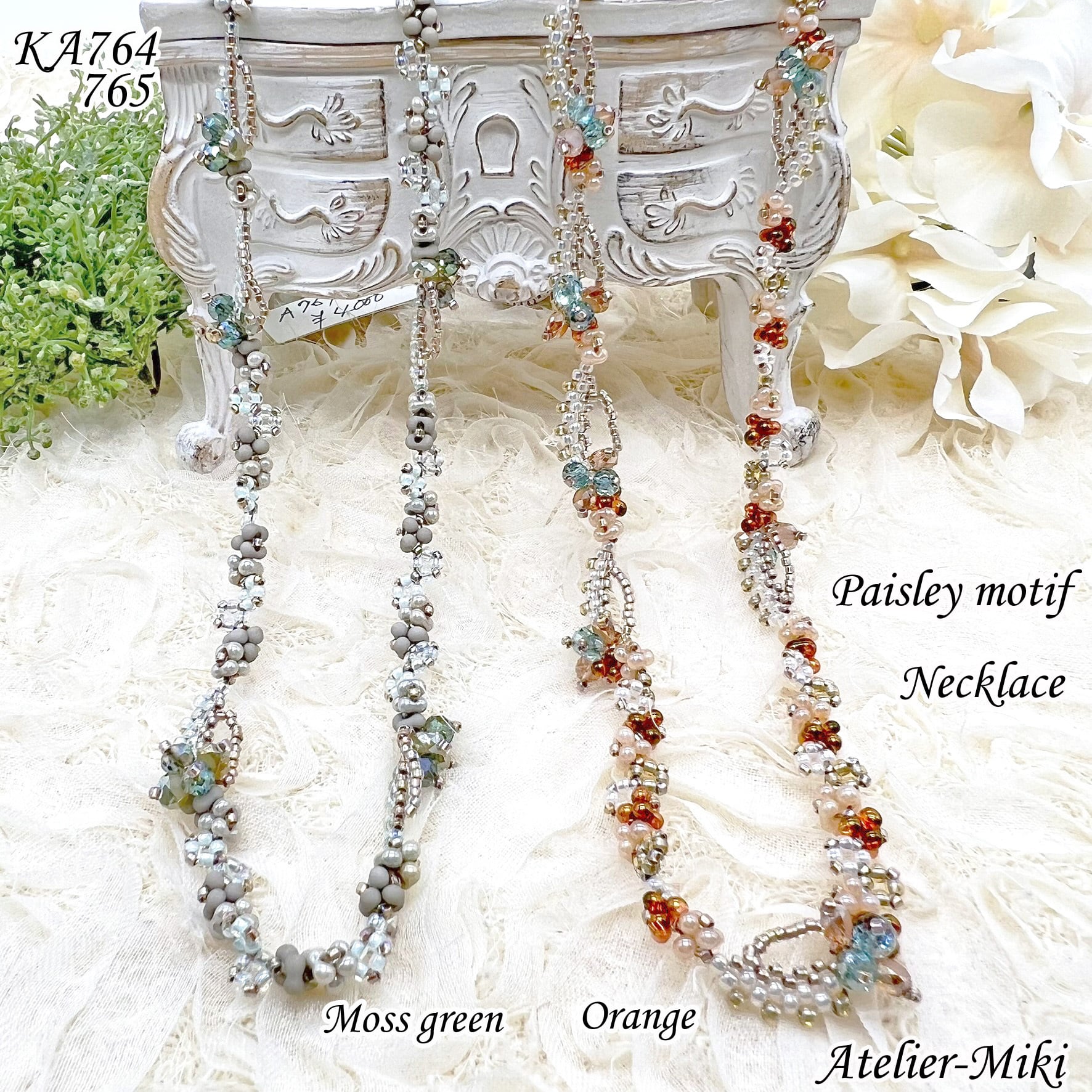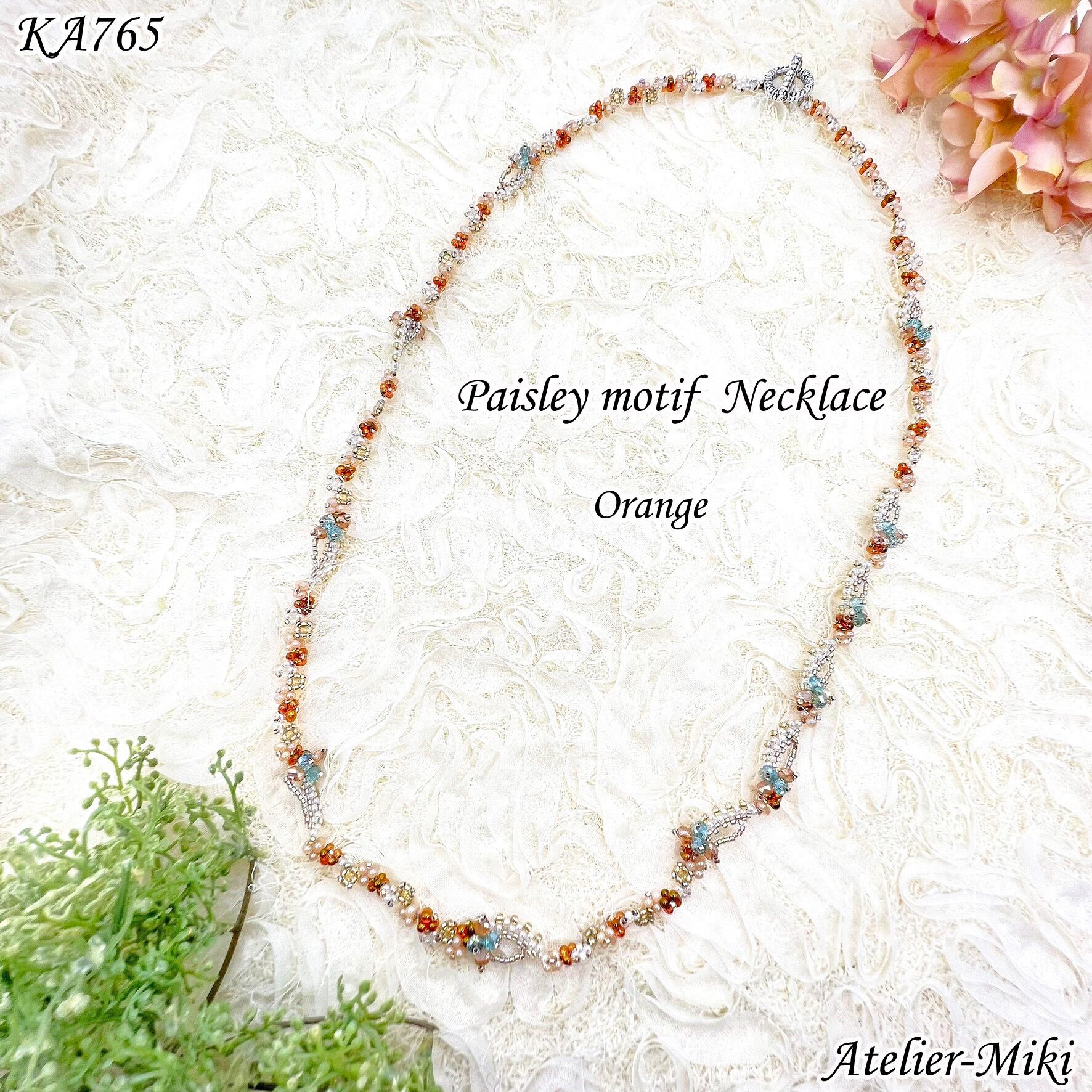 KA765 ビーズキット ペイズリーモチーフ ネックレス 【オレンジ】