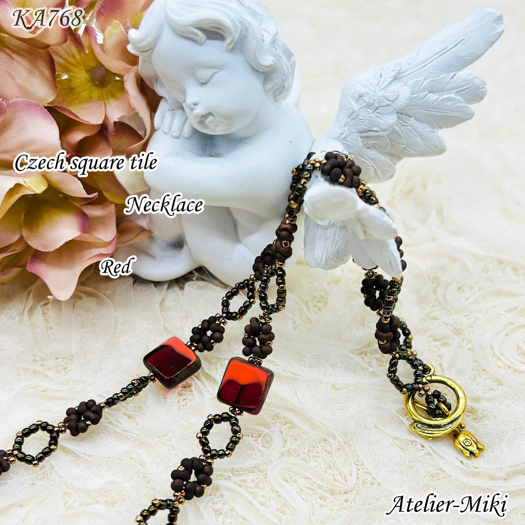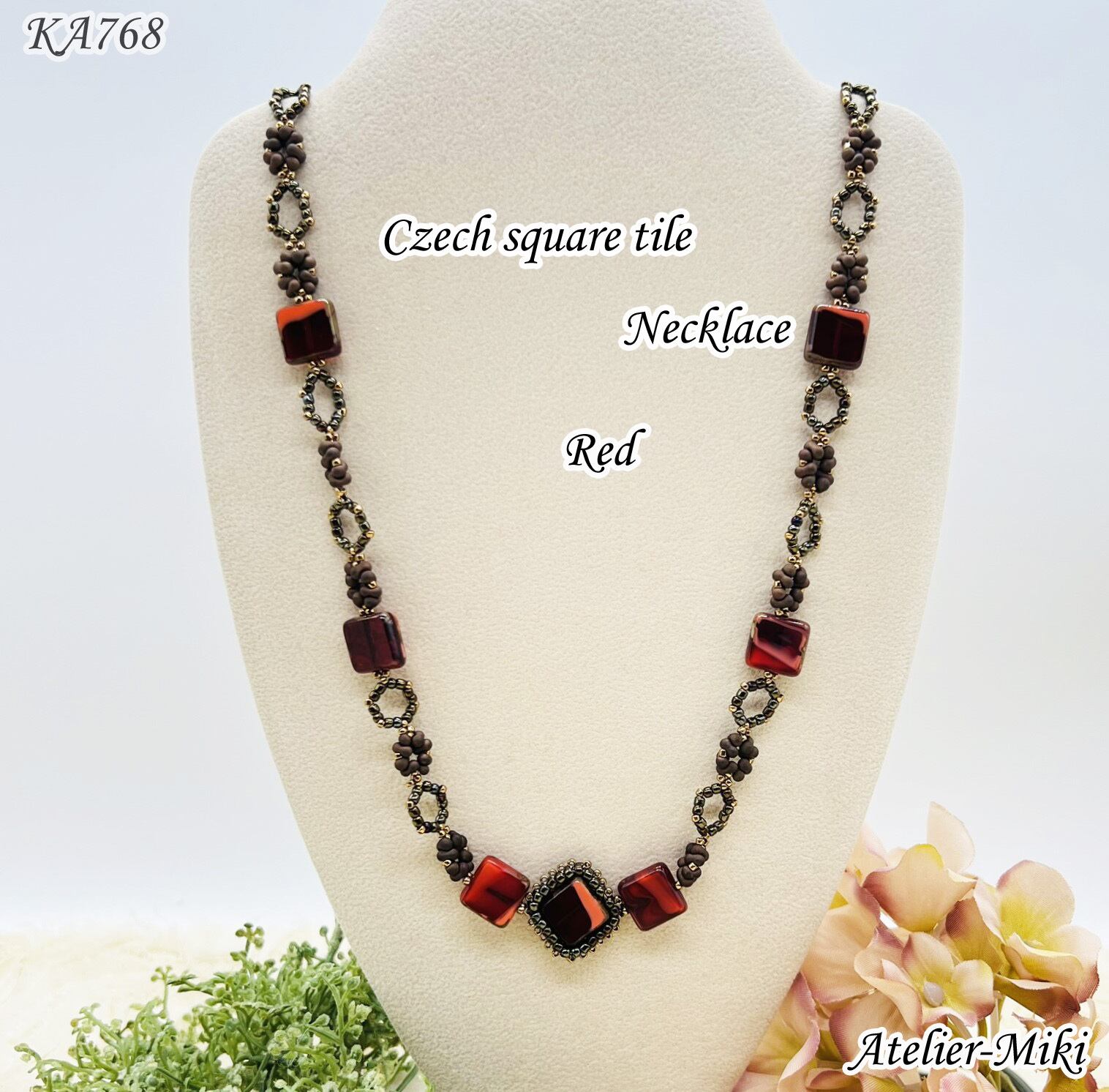 KA768 ビーズキット チェコ スクエアー タイル ネックレス【レッド】